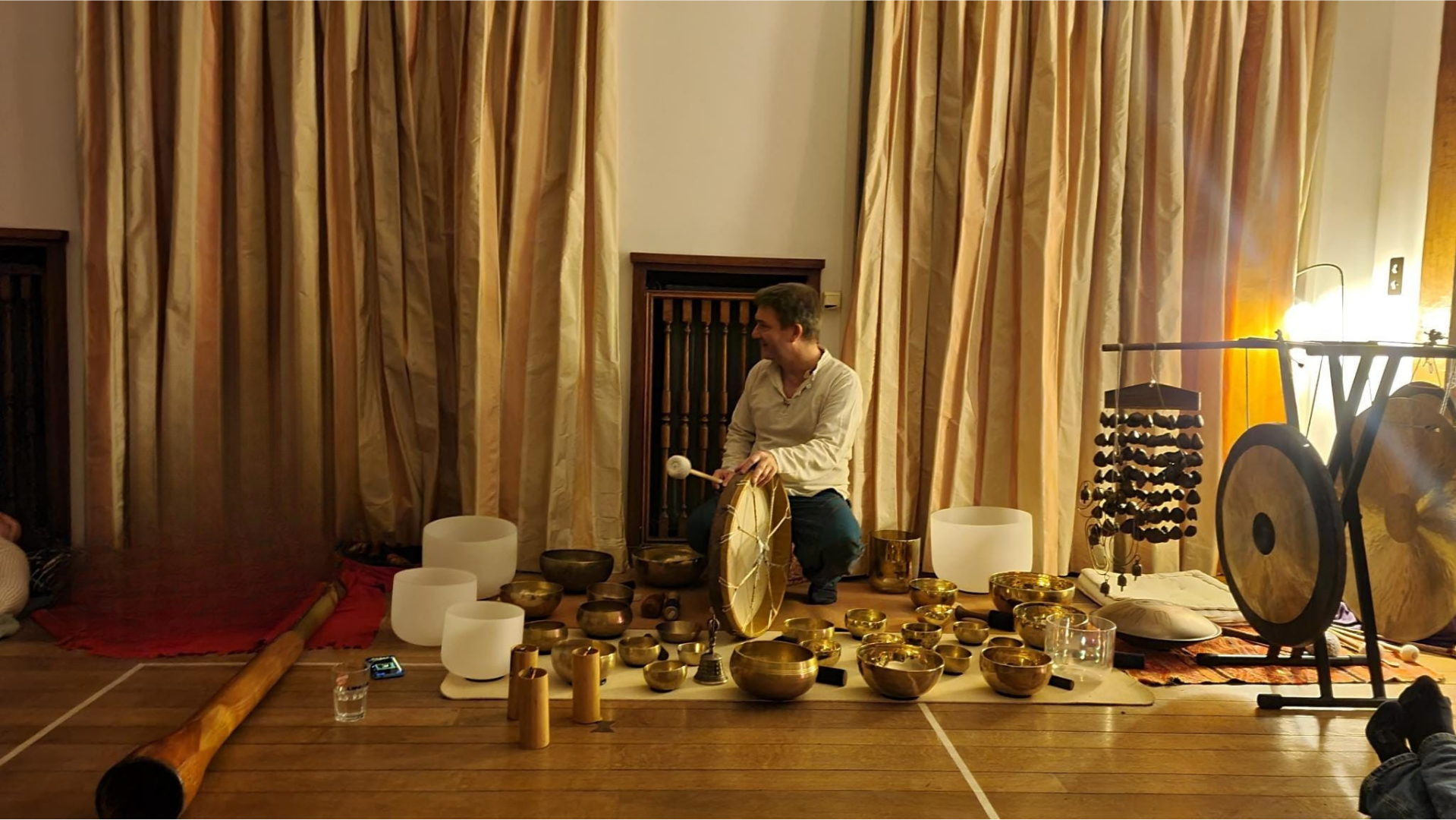 Progressivement, le mouvement laisse place à l’immobilité pour un « bain sonore » profond. Laissez les bols et les instruments masser vos cellules et apaiser votre système nerveux.